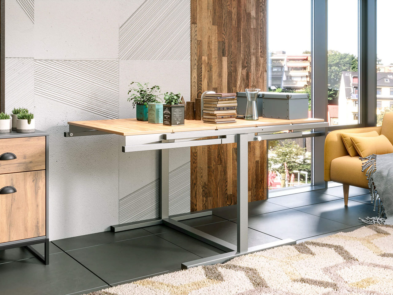 Стол-трансформер можно разместить на кухне, в гостиной или на веранде – в разложенном виде это полноценный обеденный стол для всей семьи или рабочий стол для творческих работ.