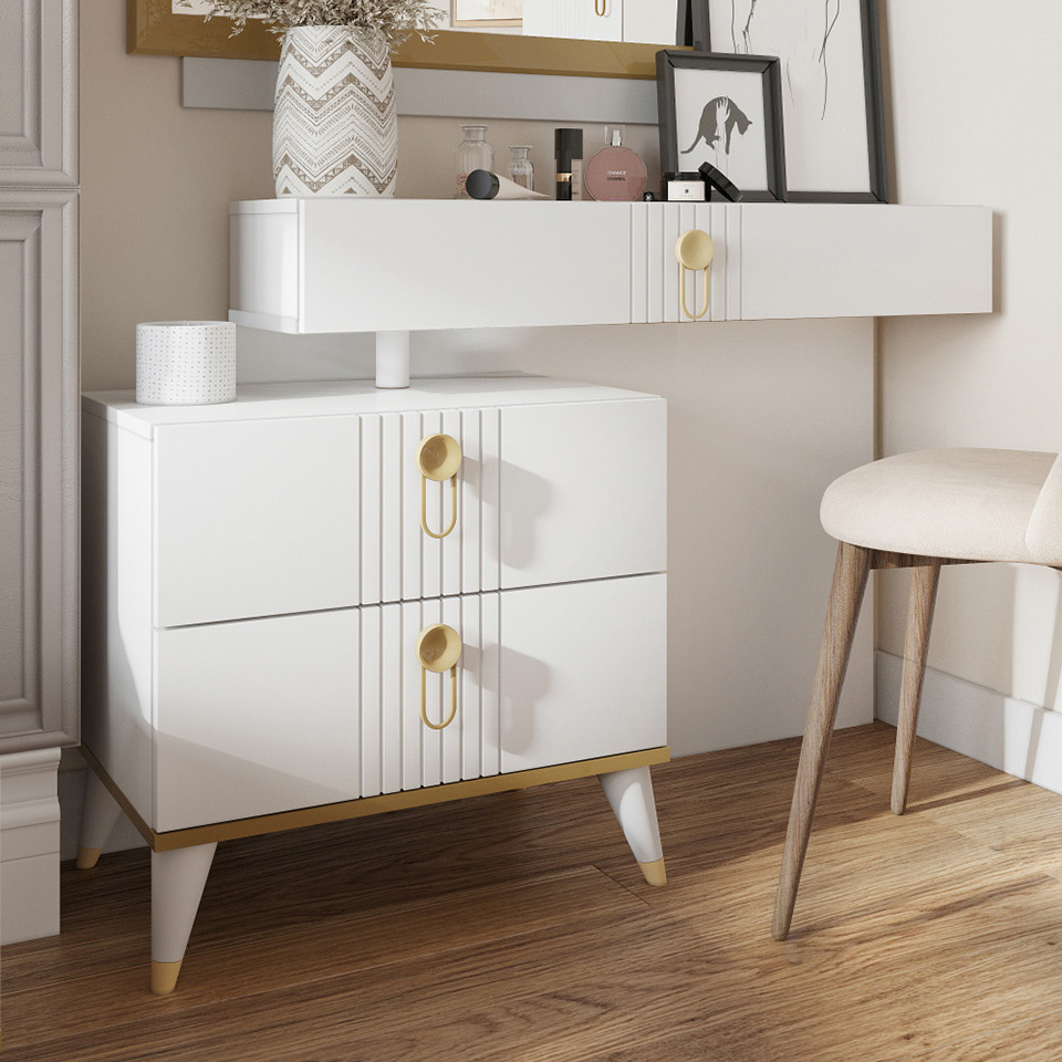 Для спален в стиле модерн или hi-tech рекомендованы столики в современном дизайне, его основные особенности – использование контрастных цветовых комбинаций, например, черных и белых, отсутствие лишнего декора, прямые углы. Строгая геометрия дает возможность на 100% использовать доступную площадь, сэкономить пространство.