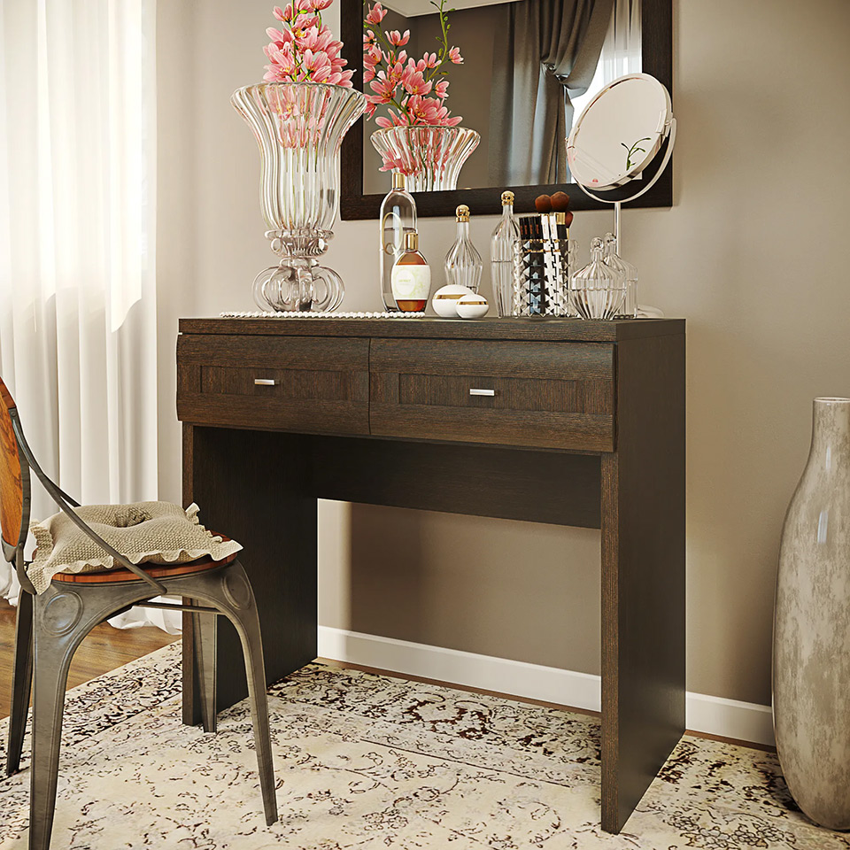 - С откидным зеркалом. В сложенном виде зеркало лежит вровень с плоскостью столешницы, так что стол можно использовать, например, как письменный или даже компьютерный, на него легко поставить ноутбук. В туалетный столик он превращается подъемом зеркала, под которым находится множество отделений для хранения мелких косметических принадлежностей.