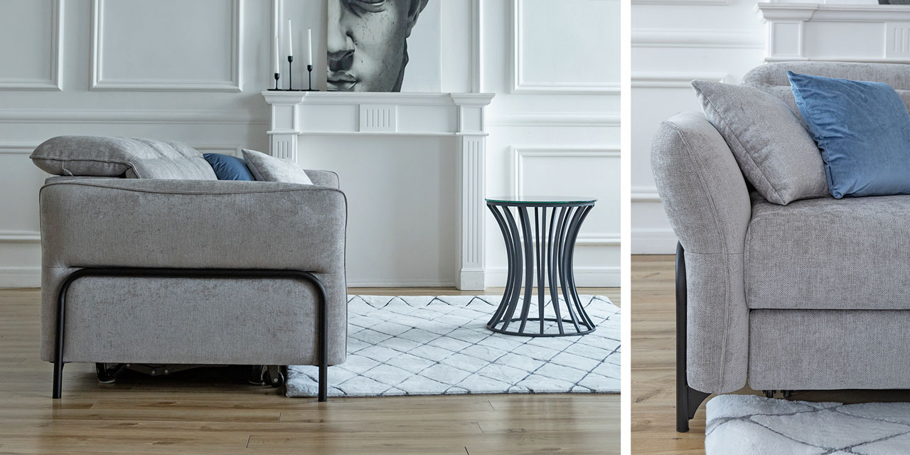 В модели Глории возможна установка электрического реклайнера в модуль П1. Изменение угла наклона подголовника позволяет самостоятельно регулировать положение на диване.