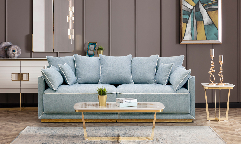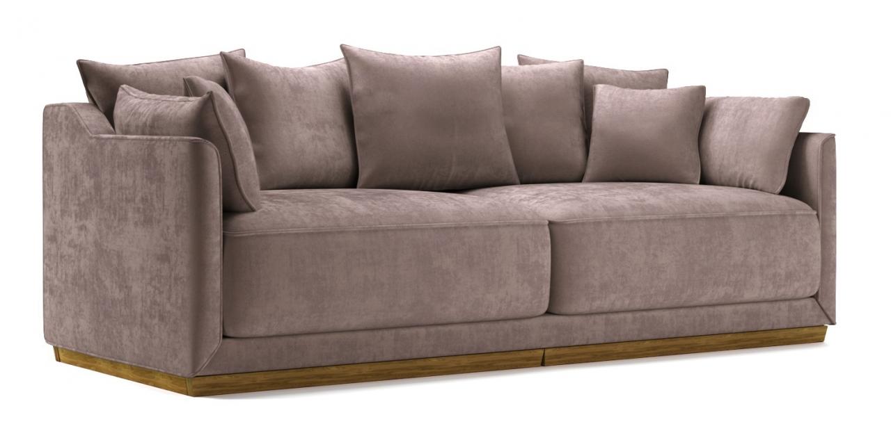 В этом диване гармонично сочетаются удобное, глубокое посадочное место и мягкие пуховые подушки. Изюминкой модели являются декоративные канты на самом диване и на всех подушках. Отдельный элемент, на который стоит обратить внимание ценителям качественной мягкой мебели - это опоры дивана. Они расположены по всему периметру дивана и выполнены из натурального шпона дуба.