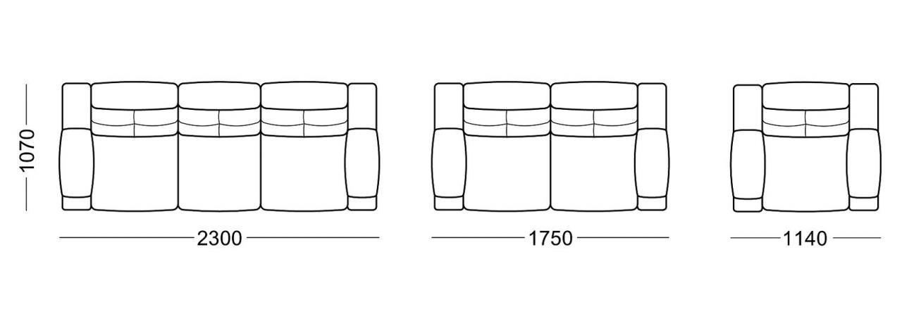 Габаритные размеры: 2300 (1750) х1070х1010 мм