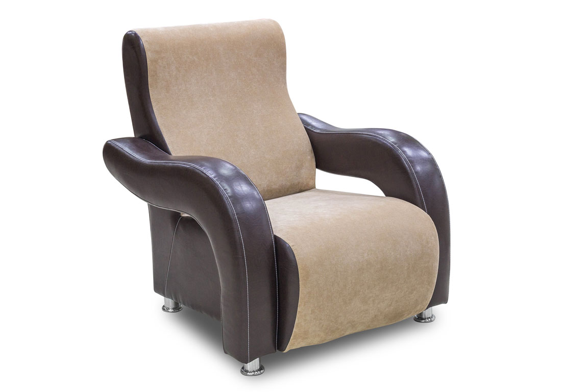 Высокая спинка и углубленное сидение отвечают за первоклассный комфорт, а подлокотники позволят положить руки и зафиксировать тело в удобной позе. Контрастная расцветка и хромированные ножки придают особое изящество и своеобразную изюминку изделию. Конструкцию нельзя разложить, но можно дополнить журнальным столиком, пуфиком для ног или банкеткой, повесить над ним торшер – эта модель будет сочетаться практически с любым предметом мебели.