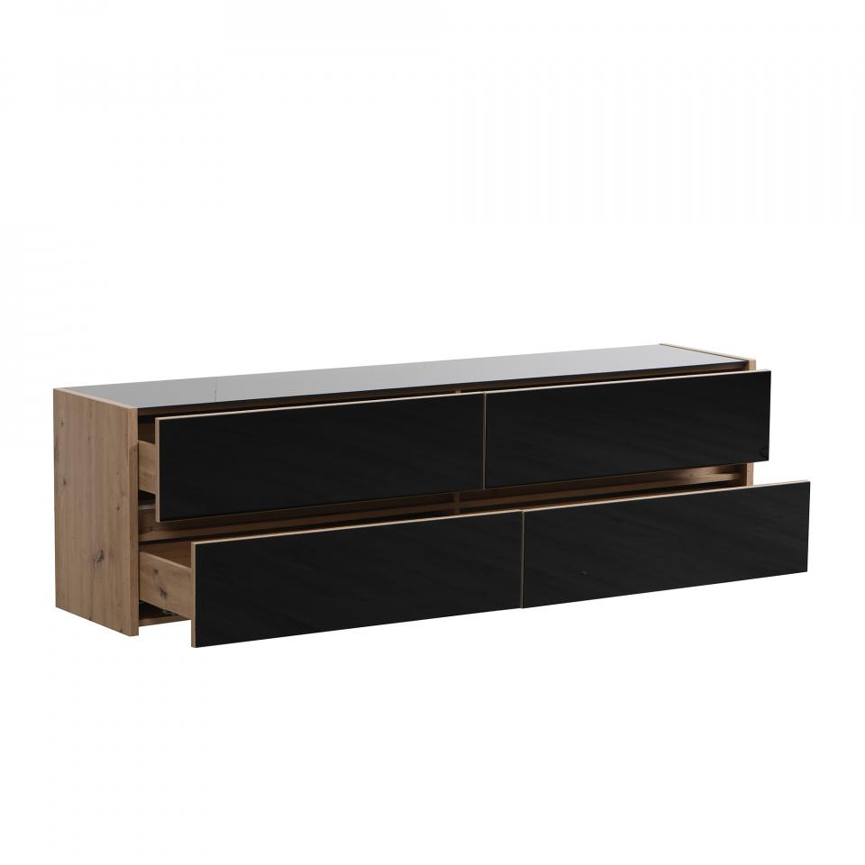 Европейское качество. Мебель производится из качественных комплектующих и экологичных материалов по стандартам ЕС. Готовое решение для гостиной. Стенка предназначена для оформления интерьера в стиле эко-минимализм, в современном стиле. Крашенные стеклянные фасады. Сочетание дуба артисан и чёрного стекла представляет собой креативное решение с ярко выраженной индивидуальностью. Такие фасады никогда не выйдут из моды. Отсутствие лицевой фурнитуры. Сохраняет внешний вид стеклянных фасадов в идеальном порядке — никаких следов от рук и отпечатков пальцев. Надёжные механизмы с доводчиками. На петли и направляющие действует бессрочная гарантия от «Лазурит».