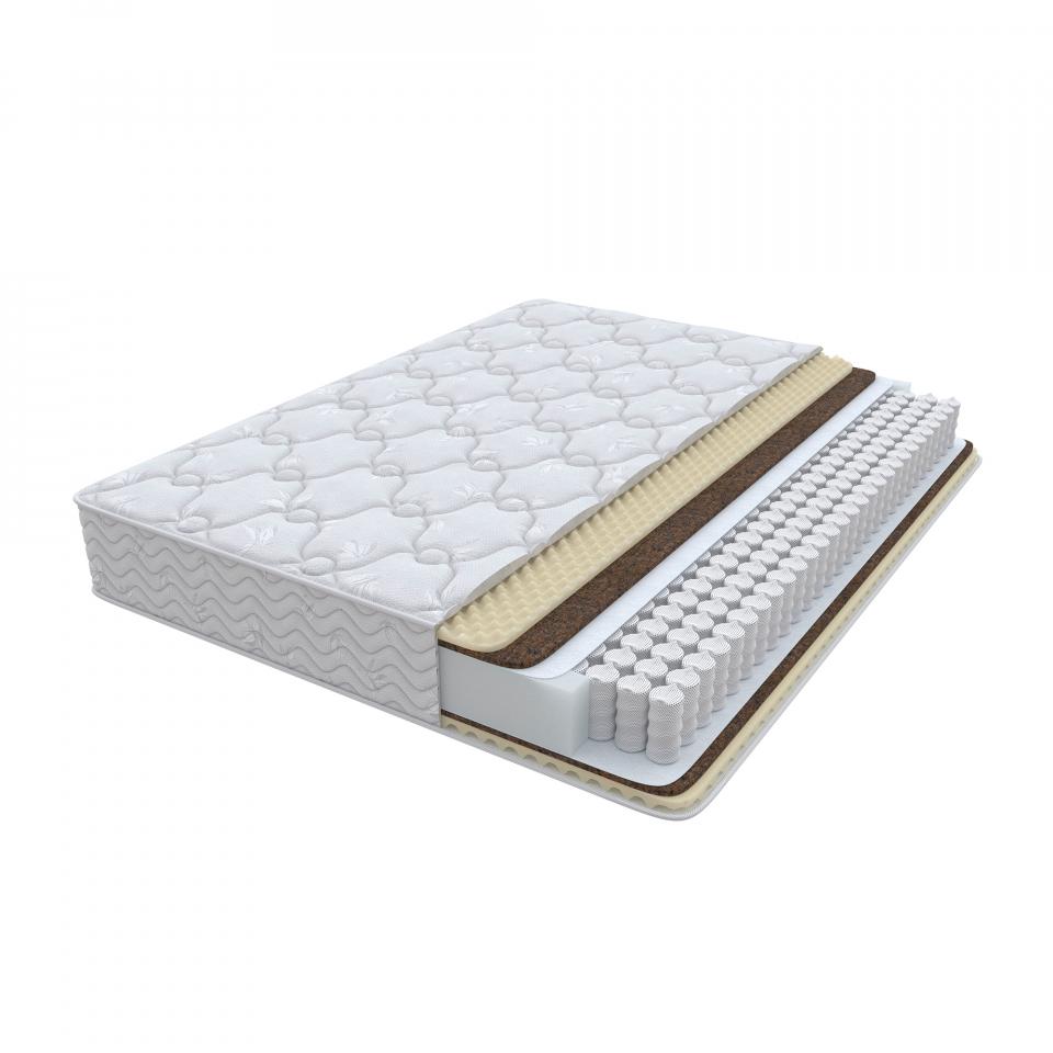Кокосовое волокно с би-компонентами — современный, экологически чистый наполнитель, известный высокой прочностью, упругостью. Материал обеспечивает теплообмен и циркуляцию воздуха, не деформируется при постоянной эксплуатации матраса. Эластичная пена с ячеистой резкой. Благодаря ячейкам пена помогает снять напряжение и расслабиться, оказывая дополнительный массажный эффект. Независимый пружинный блок Comfortpoket. На спальное место приходится 420 пружин, которые грамотно распределяют нагрузку по всей поверхности матраса, обеспечивая точечную поддержку тела. Каждая пружина заключена в отдельный тканевый мешочек и принимает нагрузку автономно от других. Трикотажный чехол. Гипоаллергенная ткань отличается мягкой фактурой.