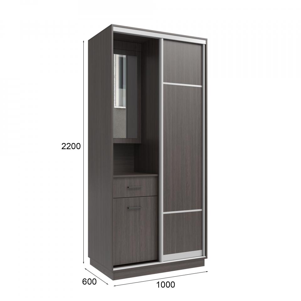 Отделение с зеркалом и тумбой. Закрытое отделение с тремя полками и ящик станут идеальным местом для хранения аксессуаров, парфюма и других небольших вещей. Под ящиком находится отделение с двумя нишами для хранения домашней и уличной обуви.