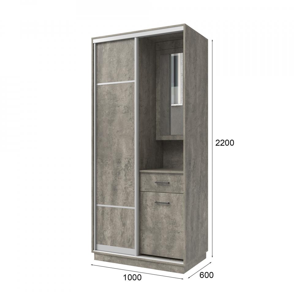 Отделение с зеркалом и тумбой. Закрытое отделение с тремя полками и ящик станут идеальным местом для хранения аксессуаров, парфюма и других небольших вещей. Под ящиком находится отделение с двумя нишами для хранения домашней и уличной обуви.