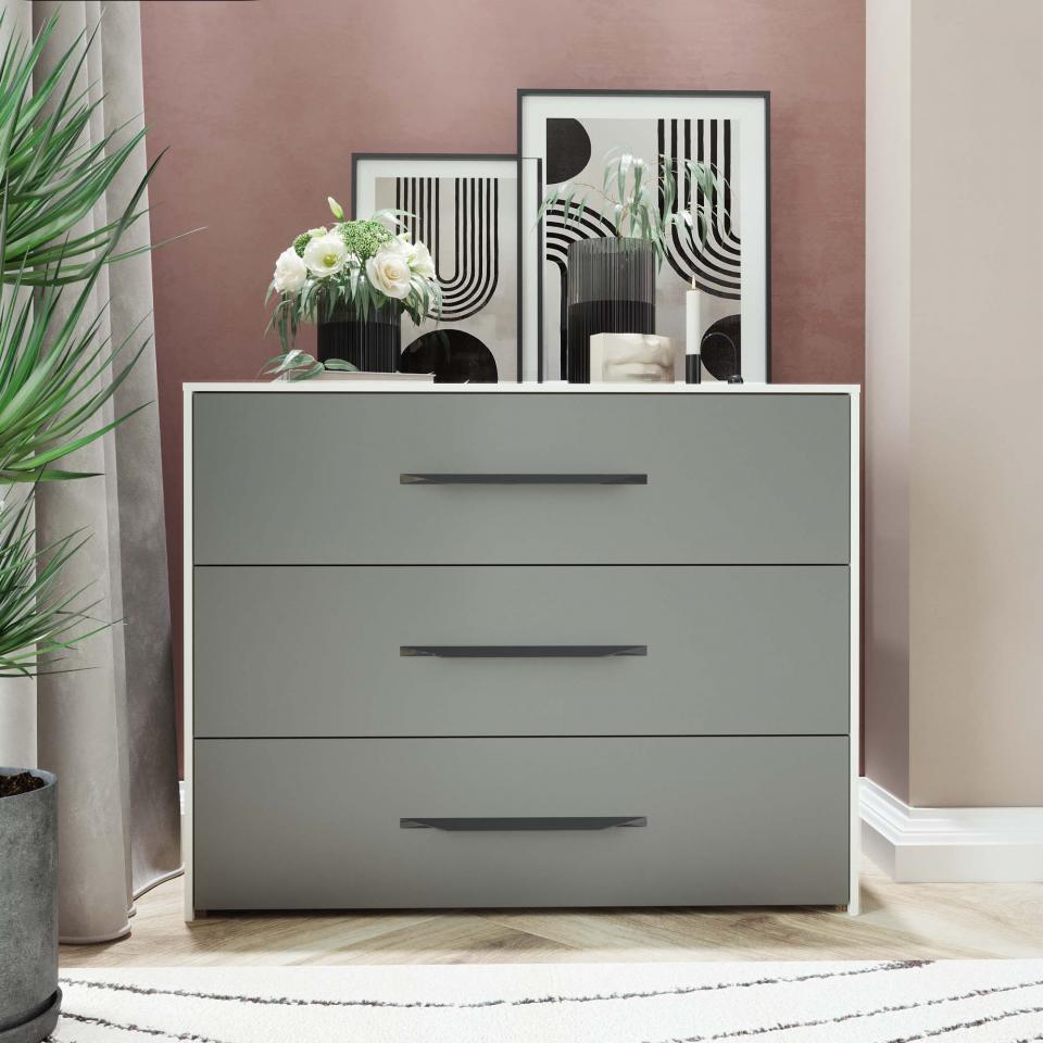 Внутренний корпус в цвете «лючента коричневый». Эксклюзивный вариант внутреннего оформления является дизайнерской особенностью серии, эффектно сочетается с иным цветом внешних стенок и фасадов. Фасад с прочным покрытием. Стильная комбинация фасадов и декоративных стенок освежит пространство спальни, позволяя подобрать оптимальное сочетание цвета и оттенков, наиболее подходящее для вашего интерьера. Три выдвижных ящика. В широких ящиках достаточно места для хранения сложенной одежды, личных вещей и аксессуаров. Чёрные металлические ручки. Оригинальные формы ручек перекликаются по стилю и цвету с ручками, вешалками и крючками других модулей коллекции. Европейская фурнитура с доводчиками и пожизненной гарантией от «Лазурит». Ящики открываются и закрываются максимально плавно и бесшумно.
