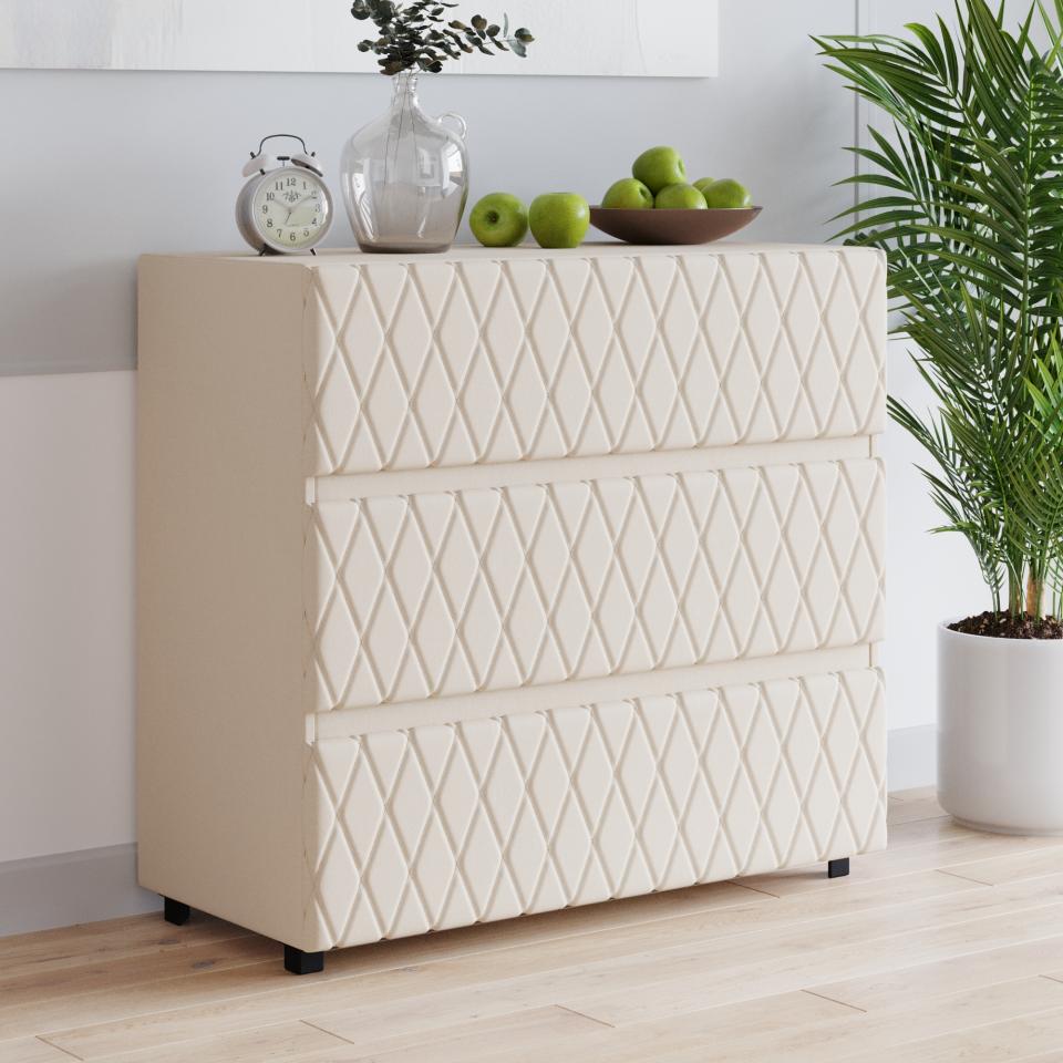 Обивка из велюра. Тактильно приятная на ощупь ткань отличается высокой износостойкостью. Три выдвижных ящика. В них можно хранить личные вещи, зарядные устройства, книги и другие аксессуары. Надёжная фурнитура. На направляющие распространяется бессрочная гарантия от «Лазурит».