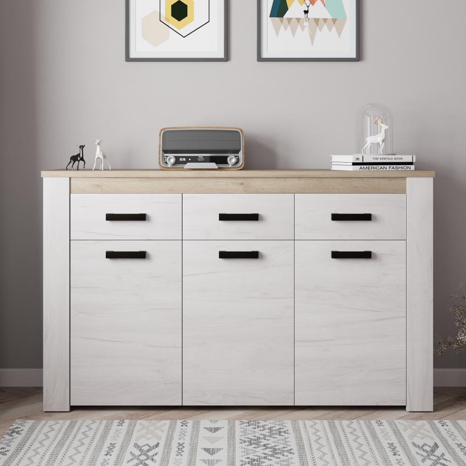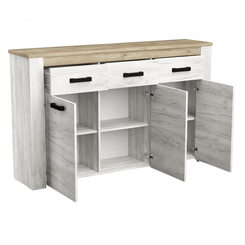 Сделано в Сербии. Комод производится из европейских комплектующих и экологичных материалов. Прочная крышка. На ней можно разместить стильные элементы декора. Закрытые отделения. В двух отделениях с полками можно хранить любые вещи и предметы. Выдвижные ящики. В ящики можно положить личные вещи, одежду, текстиль, аксессуары. Надёжная фурнитура. На петли и направляющие распространяется пожизненная гарантия от «Лазурит».