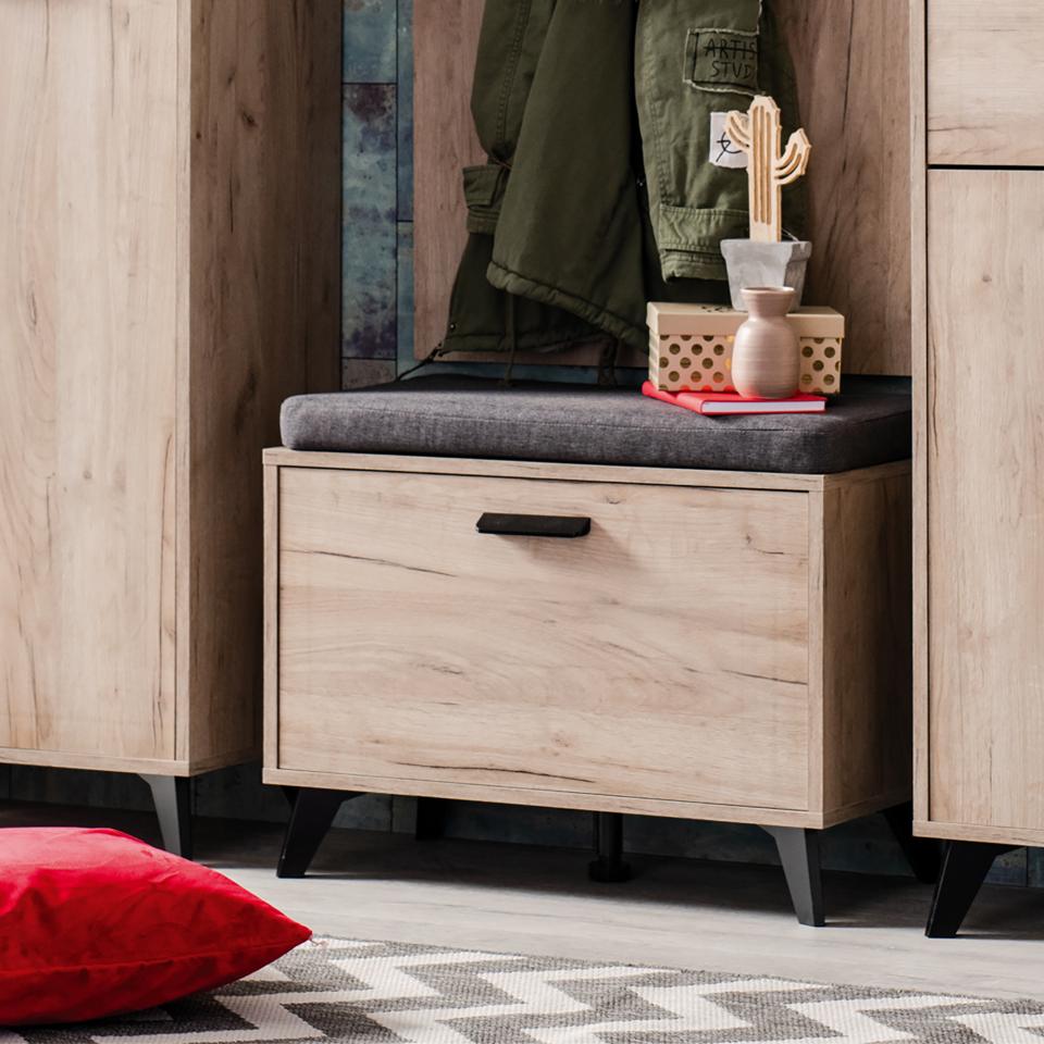 Сделано в Сербии — обувница производится из экологичных комплектующих и материалов в соответствии с европейскими стандартами качества. Отделение с перегородкой. За откидным фасадом можно хранить как уличную, так и домашнюю обувь. Мягкий элемент. В комплект входит сиденье с мягким наполнителем, обитое приятной мебельной тканью коричневого цвета. Надёжная фурнитура. На механизмы открытия и закрытия распространяется бессрочная гарантия от «Лазурит».