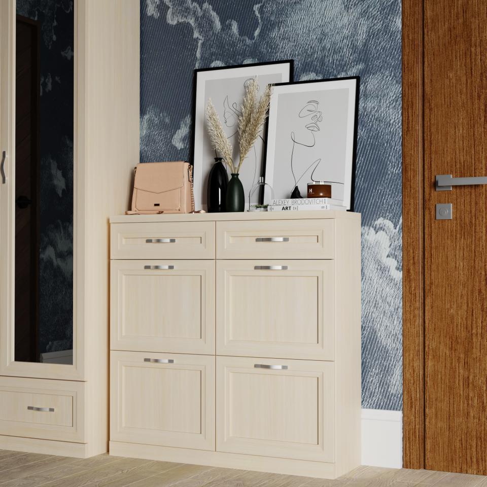 Рамочные фасады подчёркивают строгий, благородный дизайн обувницы.