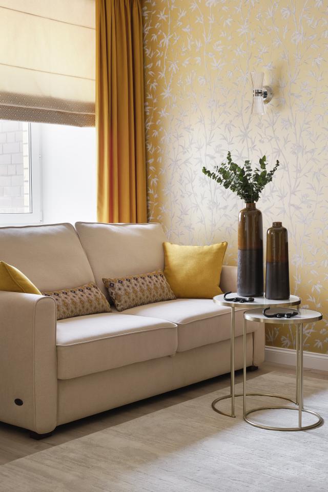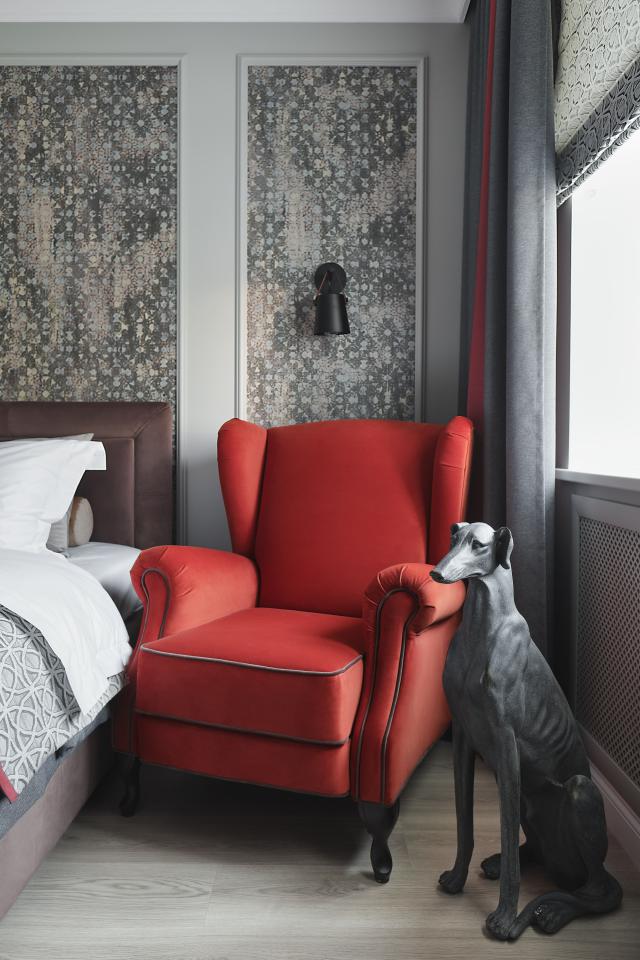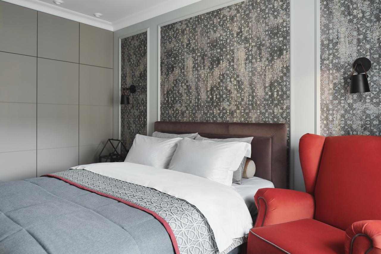Красное кресло "Рафаэль" от фабрики Next Form сразу стало любимцем хозяев. Кресла этой же фабрики выбраны для разных комнат: пара "Бергамо" с высокими спинками и стильными орнаментами украшает гостиную, голубое "Либерти" вторит дизайну кровати в спальне. В обеих спальнях - матрасы и кровати фабрики ALLEGRO с уютными мягкими изголовьями. Зеркальные тумбы выглядят ново и современно, будто растворяются в пространстве, а стол и стулья в обеденной зоне ассоциируются с камерными фешенебельными ресторанами. Значимую роль сыграли детали: посредством ярких подушек удалось освежить базовые цвет и форму комфортабельного дивана "Каспер" .